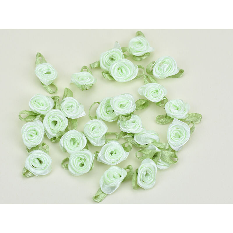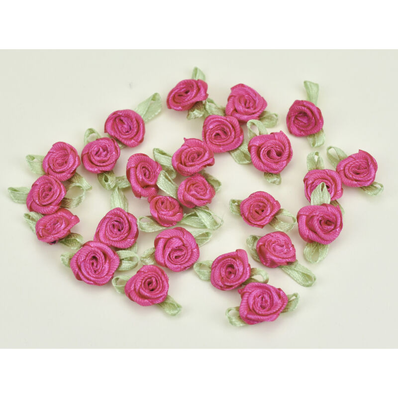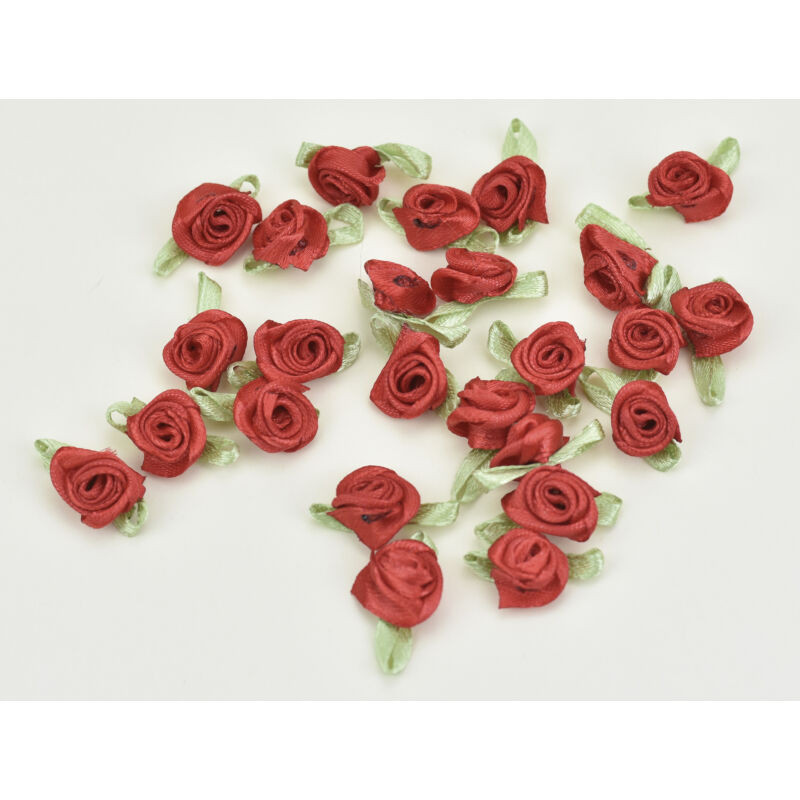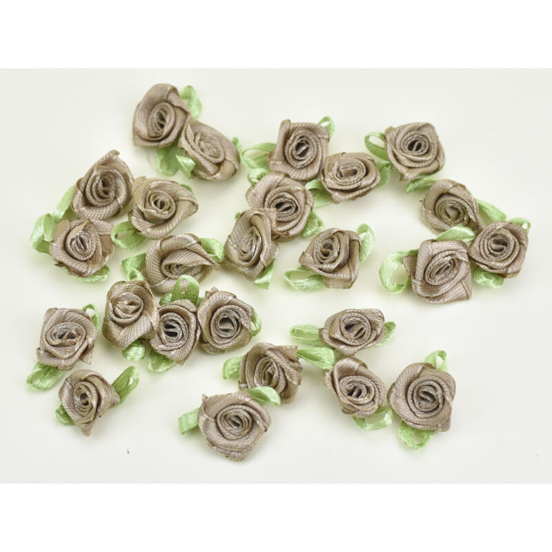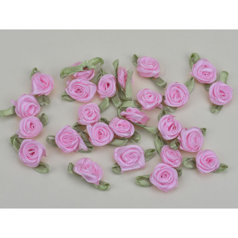 25 darab szatén rózsafej zöld levélkével