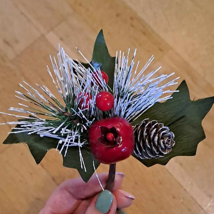 Piros bogyós ág tobozzal - 20 cm